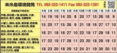 ・下表の収集指定日の7日前までに、電話・FAX・予約フォームのいずれかで予約してください。